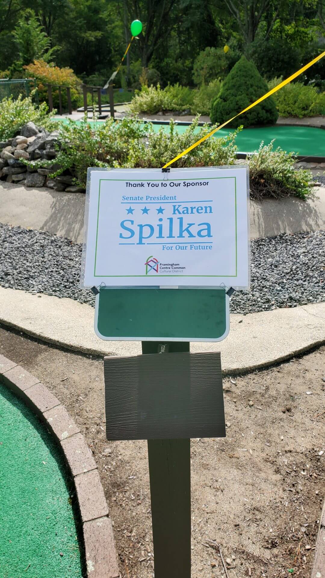 - Board Chair Annie Murphy shows off some of our sponsor signs